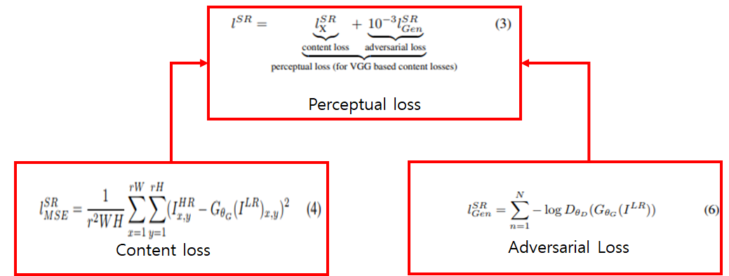 - Loss Function은 Adversarial loss, Content loss를 사용하여 구성.